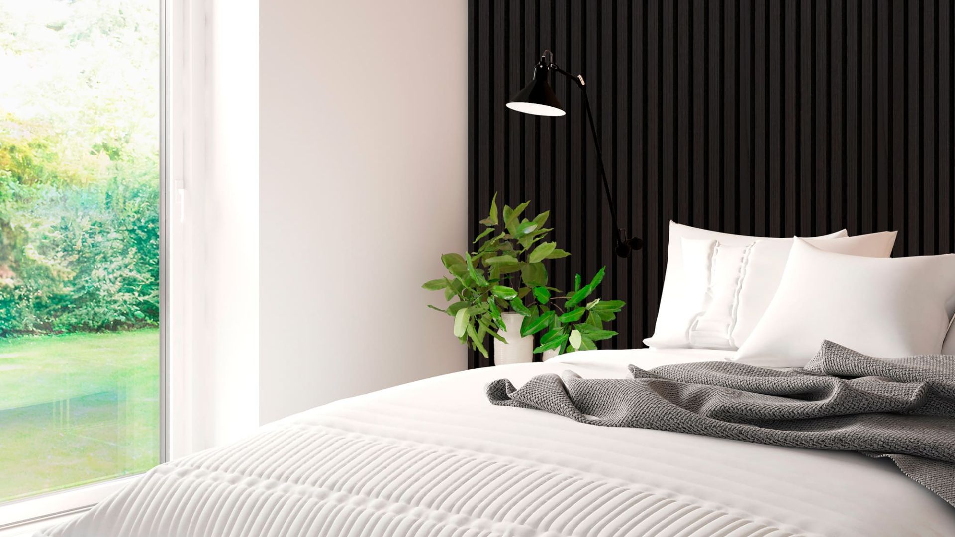 The black background creates a uniform and tranquil image, while the slat structure adds liveliness and warmth.
